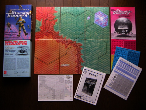Fig. 1は私が持っている"Robert Heinlein's Starship Troopers"である。ルールの最後の3頁に小説を思わせるような写真があったり、裏箱の隅にハインラインのサインが印刷されている等、当時のAvalon Hill社の力の入れようが伺える。ゲーム自体の紹介はB級SFゲーム分科会が参考になる。