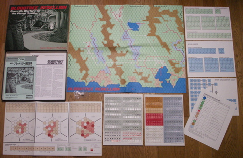 "Bloodtree Rebellion"は、ホラーRPG「クトゥルフの呼び声 (Call of Cthulhu)」や「アーカム・ホラー (Arkham Horror)」初版のデザイナーとして有名なLynn Willisがデザインした1979年発売のSci-Fiゲームである。Board Game Geek での評価は5.8。古いSci-Fiゲームの評価としては良くも無いが悪くもない。しかし、不人気テーマのゲリラ戦とSci-FiシミュレーションのANDは、1995年でも流通在庫がある位、売れないゲームでした。