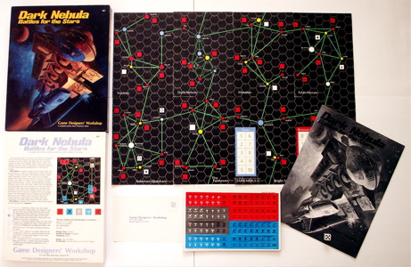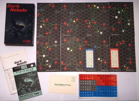 "Dark Nebula"を本格的にプレイしたのは、1986年にMORICO先輩からDark Nebulaを譲ってもらい、ユニット表面をコーティングしてからである。「インペリウム」に漬かっていた私は、それ以前にも借りたことはあったが、ユニットの色落ちが怖くて遊べなかった。短時間でゲームが終わるため、インペリウム好きの知人と繰り返し対戦した。Dark Nebulaの特徴の1つに毎回マップの配列が変わる点がある。このゲーム・メカニズムは今ではモジュラーボード(Modular Board)と呼ばれているが、当時の生産ルールがあるゲームとしては斬新であった。