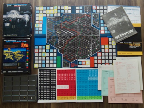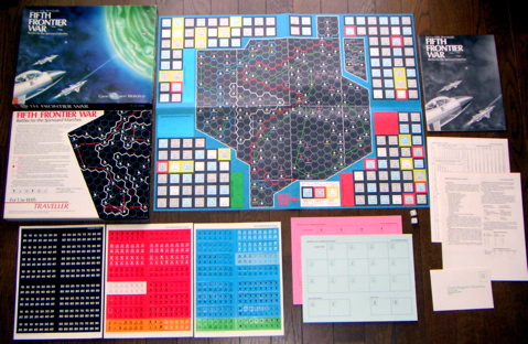 "Fifth Frontier War" はSci-Fi RPGトラベラーの舞台として有名なスピンワード・マーチ宙域(Spinward Marchs Sector)での軍事衝突のシミュレーションである。1ヘスク=1パーセク、1ターン=1週間とトラベラーの情報伝達スケールに合わせてあり、艦隊をプロットで移動させるシステムは妥当なルールに感じる。また艦隊プロットが移動記録となって、Sci-Fi RPGトラベラーの背景に利用できる点も、トラベラー宇宙の戦争シミュレーションとして上手くできている。しかし無限の移動力で宇宙戦闘が頻発するImperiumとは異なり、惑星攻略を長々と続け、遭遇戦的な宇宙戦闘をたまに解決する、以外と地味な軍事シミュレーションである。