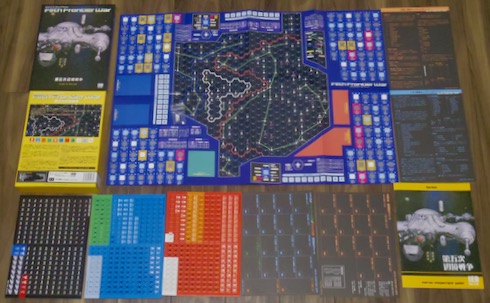 いつも参考にしているB級SFゲーム分科会には第5次辺境戦争に関する記事が無いので、私なりに簡単に紹介する。第5次辺境戦争は、移動プロット式のため、初期配置と初期移動に熟慮(または事前準備)が必要で、簡単にゲームを始めれない。そして盤面と前ターン迄に記した移動プロット(提督により長さが異なる)を見て味方艦隊の時間的・空間的位置関係を確認し、同じく敵艦隊の移動を予測して、自軍の艦隊移動をプロットするため、1ターンに要する時間が長くなる。私は1ターン1枚の白地図を用意し、その上に各ターンでの艦隊位置をプロットしていた。それでも25ターンまでプレイできたことがない。地上戦は、Invasion: Earthのシステムを簡素化して組み込んであり、兵科、練度、テック・レベルと規模だけで戦力が決まる。